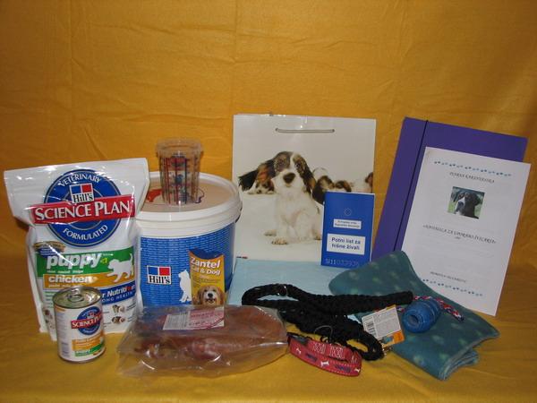 Naši mladiči ob odhodu v nov dom prejmejo paket briketirane hrane za teden dni (Hill's, puppy, large breed, chicken), konzervo, povodec, ovratnico, igračko, dekico (ki diši po mamici, bratcih in sestricah), svinjska ušesa za glodanje, 2 plenični podlogi, tablete proti notranjim zajedavcem, evropski potni list, rodovnik in navodila o ravnanju z mladičem. Ob prevzemu mladiča podpišemo tudi kupoprodajno pogodbo.