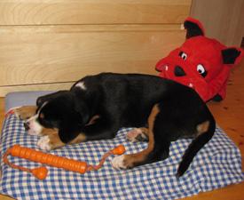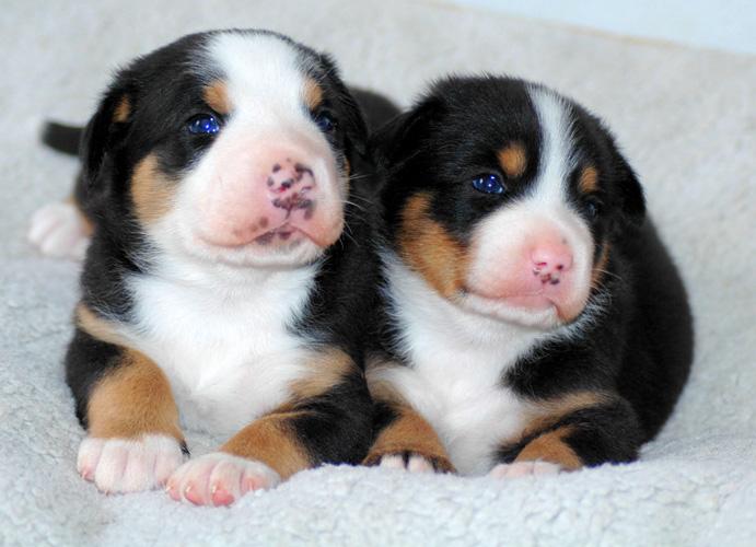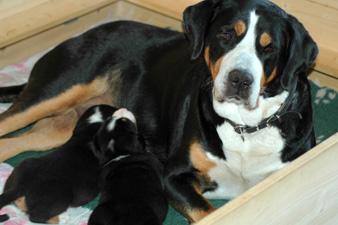 Če sem ob nakupu Nube le bežno poznala problematiko pasme in imela bolj malo informacij o linijah, je bilo pri Loni drugače. Izbira mladička iz tega legla ni bila naklučje, ampak plod večletnega preučevanja rodovnikov. Njena mamica Alaska je ena izmed lepših švicark, ki sem jih do danes srečala. Poleg dobrega zdravstvenega ozadja ima lepo zgradbo telesa in odlično gibanje. In najpomembnejše-čudovit značaj. Podobno kot očka Castellan. Lona tako prihaja iz izredno perspektivne paritvene kombinacije in je bila rezervirana že mnogo preden se je skotila.
