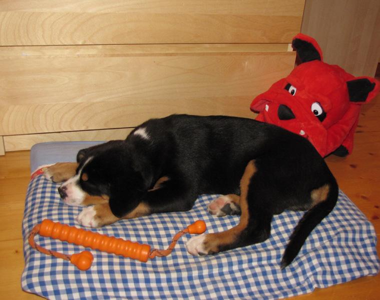 Lona je naša najmlajša pridobitev in prihaja iz priznane nemške psarne Marguery's (prej poznana pod imenom Elchschaufel). Skotila se je 20. aprila v leglu dveh mladičkov, in sicer skupaj z bratcem Boromirjem. V njenem rodovniku lahko najdemo kar nekaj pomembnih nemških linij, ki upam da bodo v prihodnosti pomembno osvežile švicarsko kri pri nas. Če bodo njeni zdravstveni izvidi primerni, bo namreč nosilka druge (vzporedne) linije, ki bo nosila ime Karantanska.